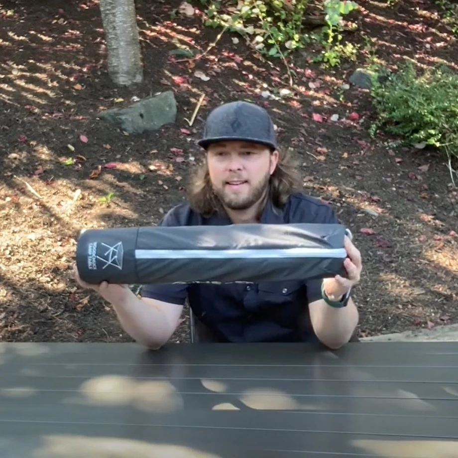 The collapsible design assembles in seconds thanks to its shock-cord pole architecture system. The folding hardtop quickly clips onto the pole frame to create a stable, flat surface for food and drinks. Aircraft-grade aluminium poles keep it light and highly durable while a high-tenacity Robic™ yarn surface is lightweight and 25-30% stronger than regular yarn in the same denier.