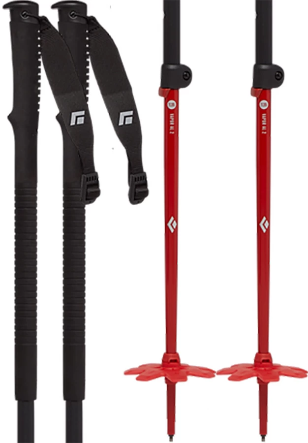 The redesigned touring grip, provides a comfortable grip on the ascent with the more traditional grip at the top providing a familiar and secure hold for the descent. The adjustable length makes them ideal for use as an all-mountain pole as well as a touring pole.