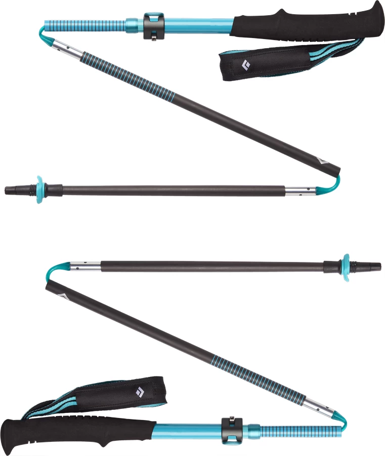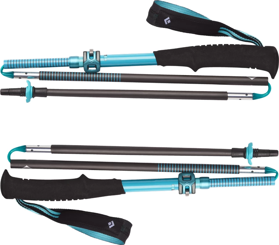 The Women’s Distance Carbon FLZ poles from Black Diamond are durable and ultralight trekking poles forming part of the folding Z-Pole Carbon series.