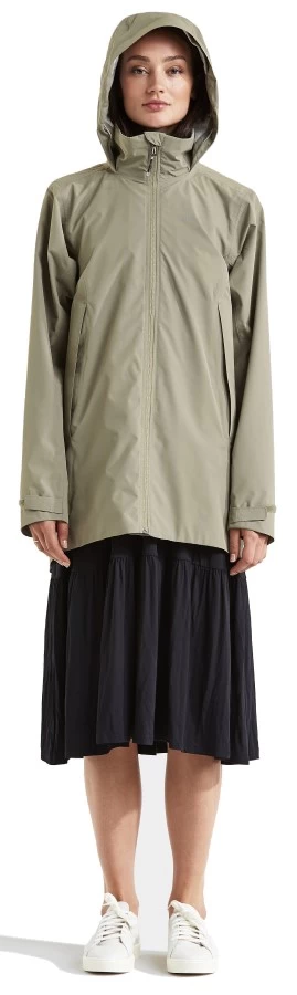 Offering a classic feminine cut and an adjustable hood that can be rolled up and concealed in the collar, the Noor Parka offers a versatile look and adequate weather protection. The recycled Polyester construction offers an eco-friendly design and a beautiful matte finish that contains a PFC-free water repellent coating.