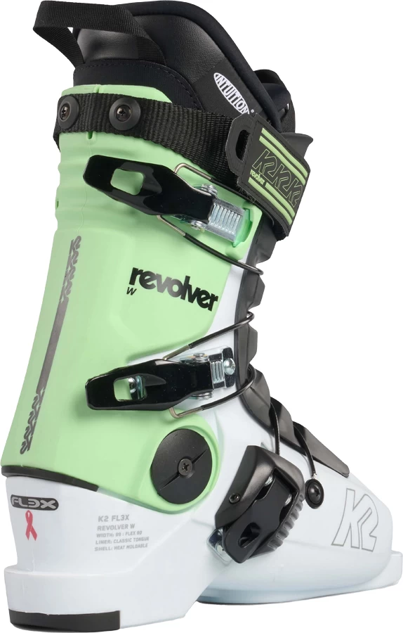 In terms of the latest K2 tech, the Revolver W boots feature a Grilamid Tongue for a superior strength-to-weight ratio and consistent flex across a wide range of temperatures, together with the Intuition Tongue Liner, which is laminated using multi-layered construction in a traditional tongue liner, and designed to provide targeted comfort and performance in a familiar way.