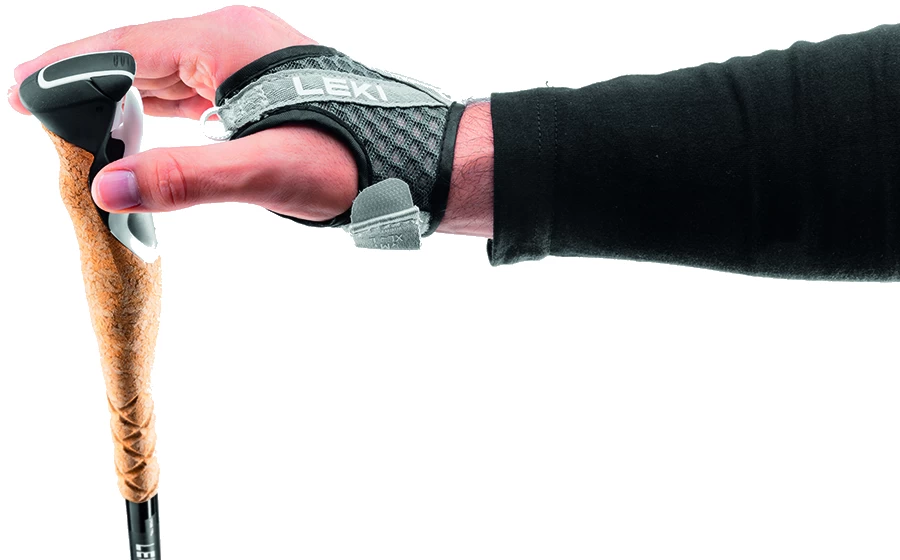 The strap is made from breathable mesh and encloses the hand securely and tightly for maximum balance and control. It is adjustable in a very few steps and allows for rapid clicking in and out of the pole for ease of use.
