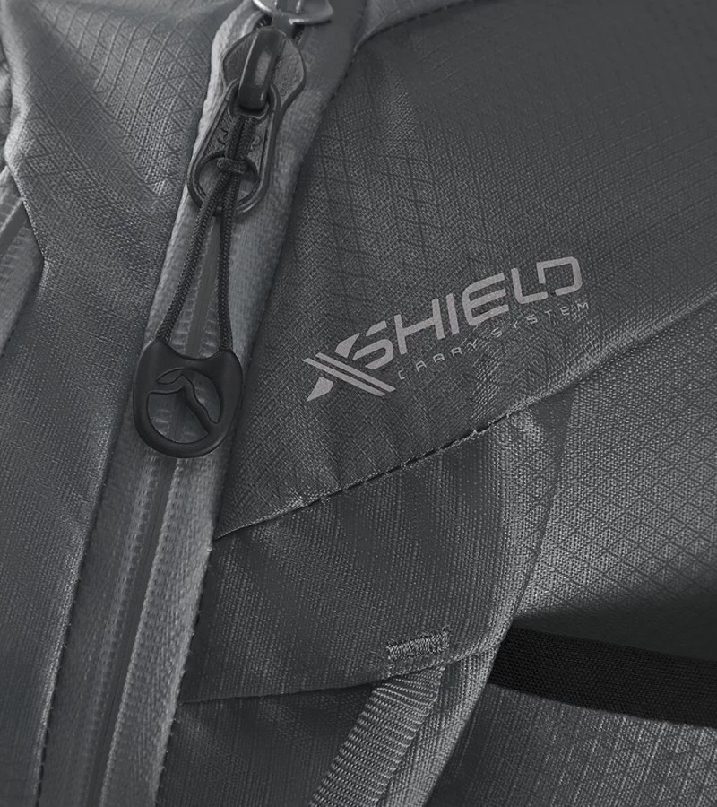 The pack features Flexion Technology in both the harness and an EVA sheld in the back panel for the protection of the user and a removable spring steel frame. The conglomerate of technologies from the foundations of the X-shield carry system – lightweight, stripable and protective.
