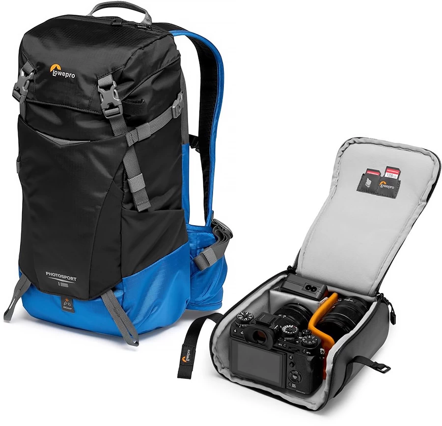 The 15L version of this iconic Photography Backpack features offers enough room for a 2 litre water reservoir (not included) and is completely hydration compatible thanks to a dedicated compartment on the back side. It also offers enough room for: Crop sensor DSLR/CSC with attached lens plus extra lens or Mavic Air Kit, extra gear such as bike helmet, jacket snacks, sunglasses, and compact tripod etc. It also comes with the Lowepro GearUp strap kit.