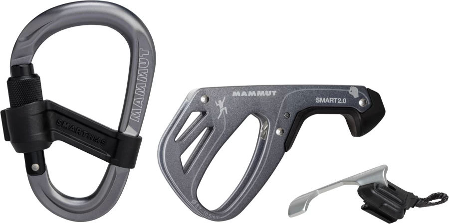 The Smarter Package from Mammut is the ideal combination for flawless, safe belaying. The Smart 2.0 offers intuitive auto-assisted locking and combined with the Smarter, it reduces the risk of human error, whilst the Smart HMS is a secure screw gate carabiner with a key lock for security.