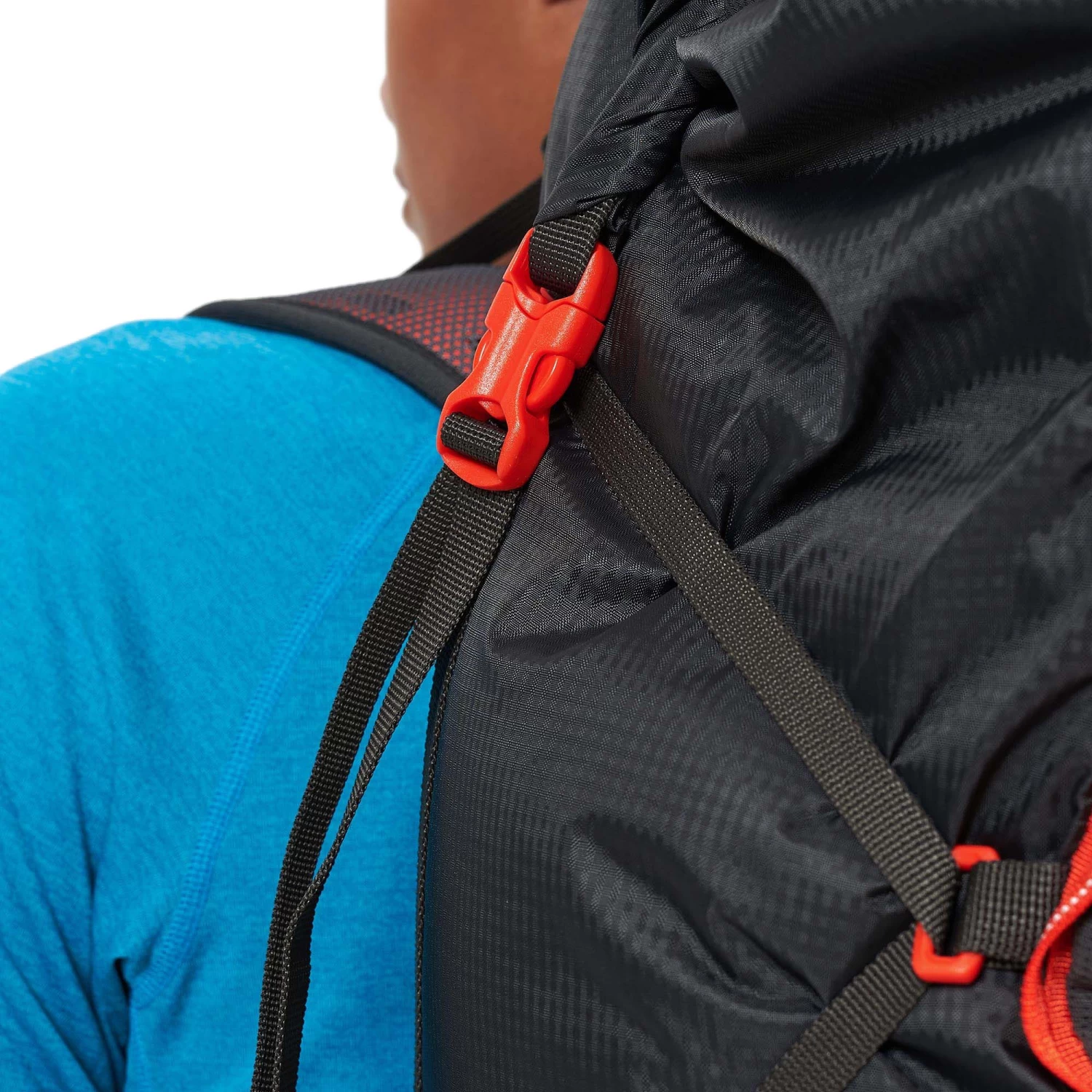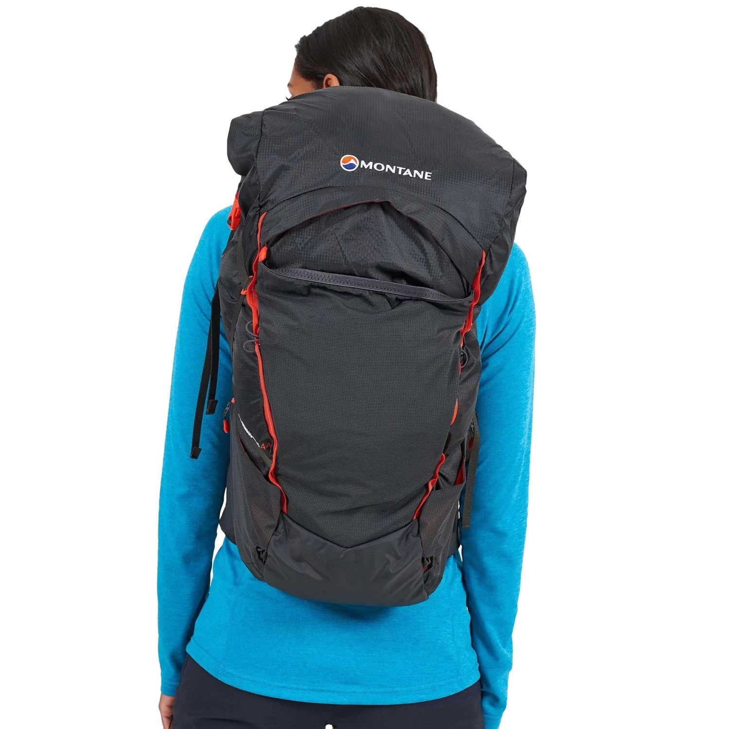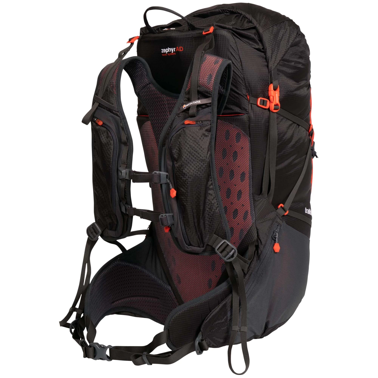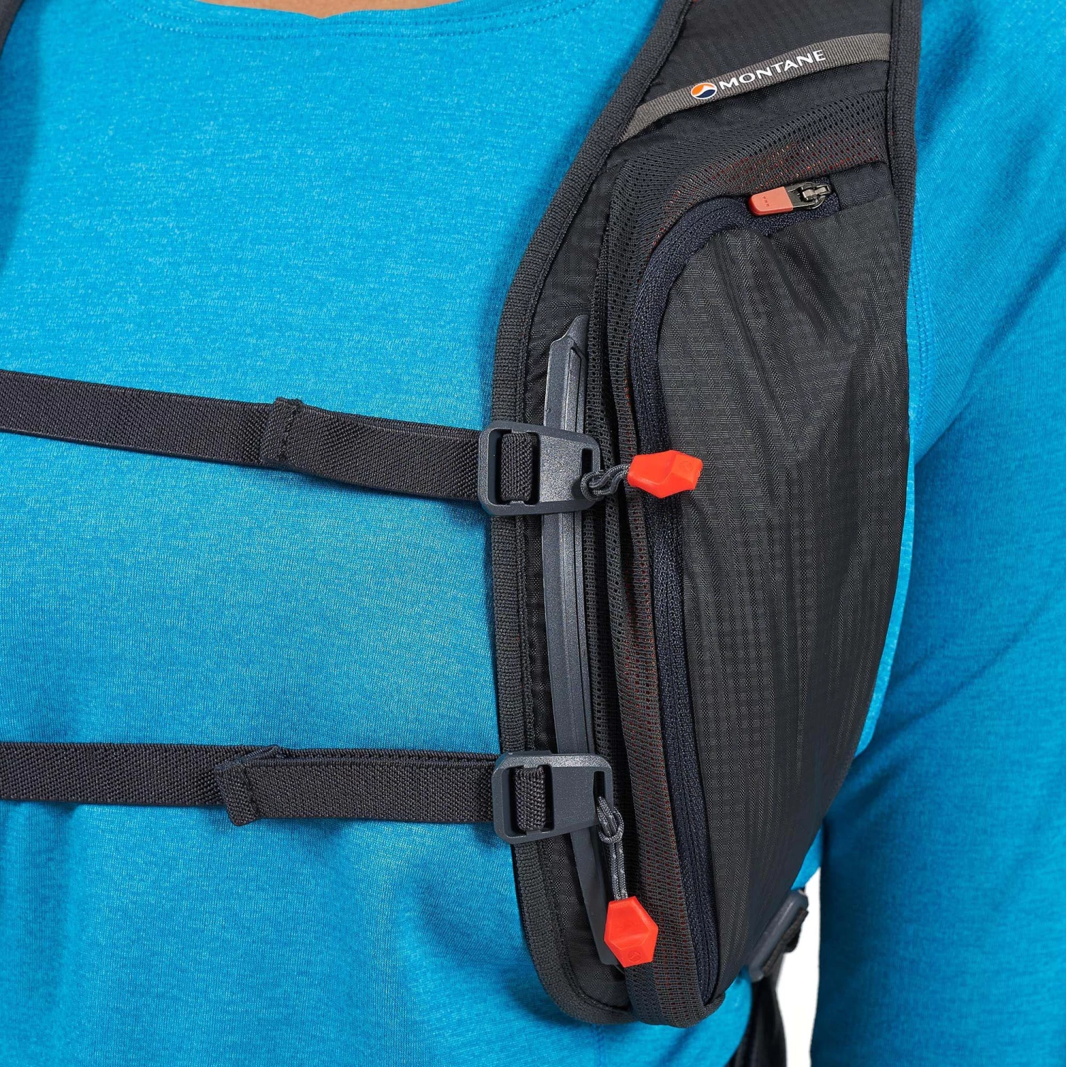 The Trailblazer is equipped with a customizable, body-hugging COVALENT harness that stabilizes your load without restricting movement, and two off-center Montane Click and Go chest harness straps ensure accessibility.
