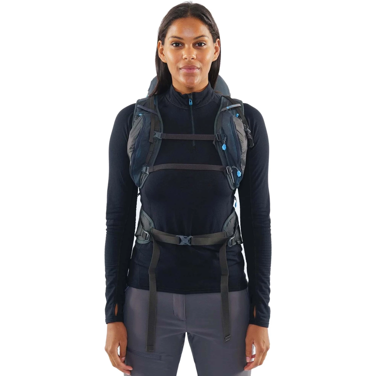 The Women’s Trailblazer is equipped with a customizable, body-hugging women’s specific COVALENT harness that stabilizes your load without restricting movement, and two off-center Montane Click and Go chest harness straps ensure accessibility.
