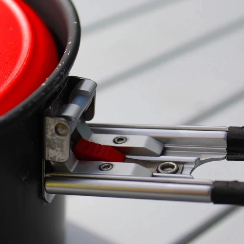 A Talon™ Pot Handle gives you an ultralight, secure and non-conducting pot handle with a simple push-button release mechanism allowing you to use your pots safely and easily. This handle folds to lock on lids allowing secure travel for your cooking kit.