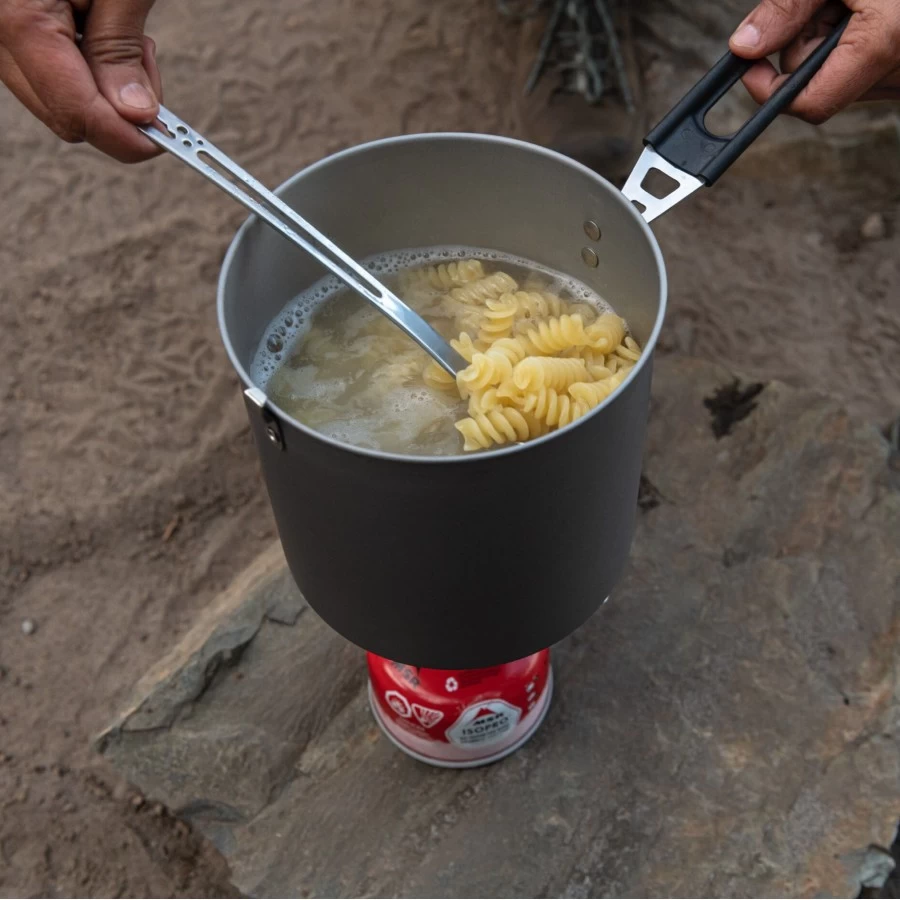 Now available on its own, the Trail Lite 2L Pot from MSR gives you an ultralight and compact pot with volume enough to cater to 2-person backpacking adventures and camping trips. Made from hard-anodized aluminium, this tough cookware features a ceramic non-stick coating with a folding handle that securely holds the strainer lid in place. The perfect pot for pastas, stews, soups and other one-pot meals. A great place to start building that lightweight outdoor cookset.