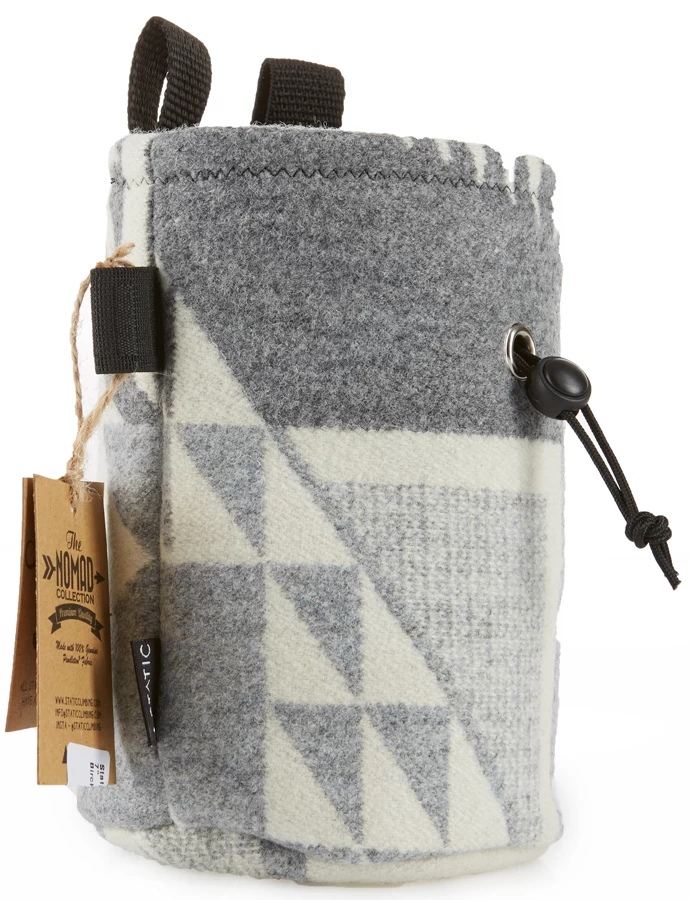 Constructed with care using locally sourced materials, Static’s genuine American Pendleton wool makes every Nomad chalk bag unique – each bag will have slight variations in pattern and colour.