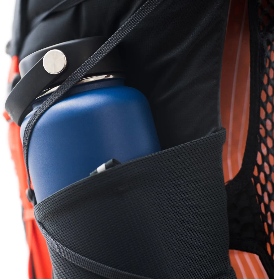 Water bottle pockets feature anatomically reachable storage holes to keep you hydrated on the go, whilst the pack is also hydration system compatible for those who prefer to use a reservoir. An elasticated front mesh pocket allows you to store wet items and keep them separate from the rest of your luggage.