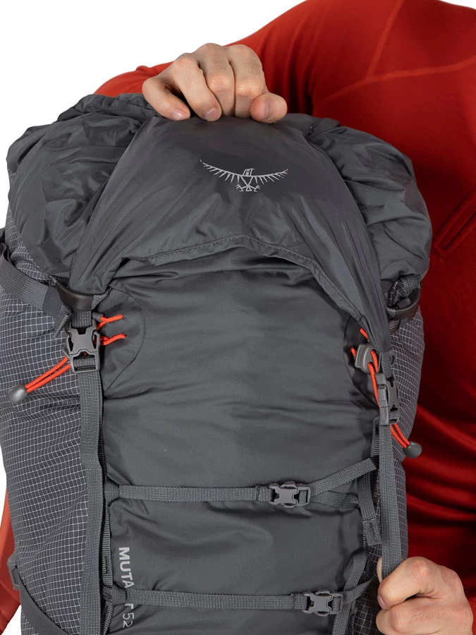 A removable top lid provides main entry into the Mutant 52, the lid allows for the additional carry of rope or when overhauling the back for base camp approaches. The entire lid is optionally removable, to reduce overall pack weight or provide improved head clearance on more demanding climbs. When stripped the FlapJacket provides another level of water/snow protection keeping your gear protected.