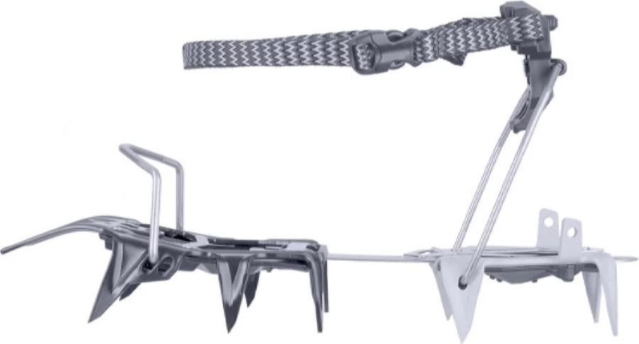 The low profile keeps the foot closer to the rock or ice giving you greater control while the sharpened steel points make short work of hard ice. Tool-free adjustment in the base makes it quick and convenient to size. A hybrid attachment system uses a flexible plastic cradle in the toe. A lever lock in the heel requires welted boots to ensure a secure fit. A single strap adjustment holds the crampon in place and prevents accidental loss should it become separated from your footwear.
