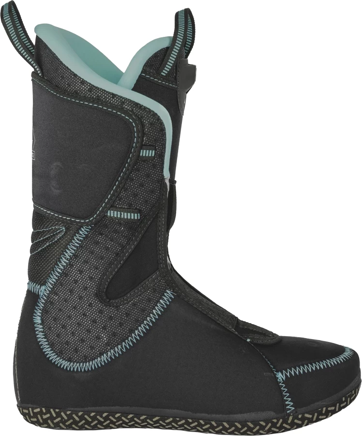 The Celeste Tour’s dual-action flex tongue ensures the mobility of the cuff for climbing, while also giving you solid support in the turns. At the same time, the adjustable Forward Lean gives you added flexibility too. The Rear Hook Walk System is simple, strong, and dependable, delivering robust energy transfer for skiing and loads of mobility when walking.
