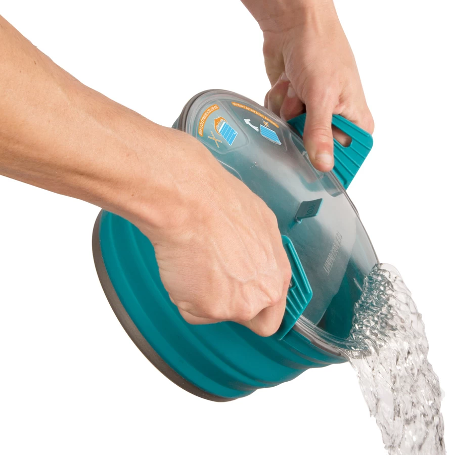 The 2.8L X-Pot from Sea to Summit features a silicone walled construction with 5 folding segments that fold down to a backpacking friendly 45mm. The aluminium base offers a fast boil time while a stainless steel ring embedded in the rim delivers cooking stability for stirring and lifting.
