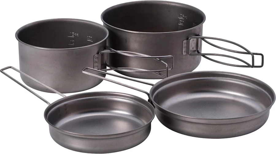The Titanium Personal Cookset is a classic of the Snow Peak outdoor cookware line and makes a fantastic choice for 2-person backpacking and trekking adventures where a low pack-weight is key.