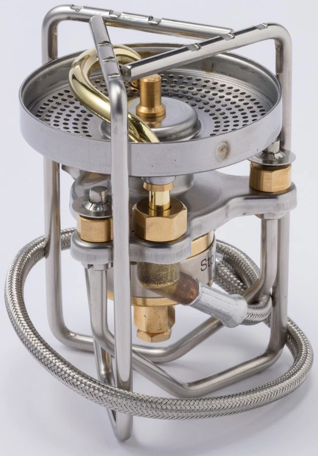 The included Butterfly Gas Valve lets you connect to a gas canister with a simple slide-ring click and connect system. When using a gas canister, the stove is ignited with the canister in an upright position. The canister is then inverted after running for 5-10 seconds to ensure smooth operation. The clever design features a fold-out stand that lets you safely invert the canister. A flame control then allows you to regulate the flow from simmer to boil.