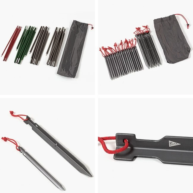 - Pegs: Twisted Y-peg 16cm x18, twisted Y-peg 24cm x 6