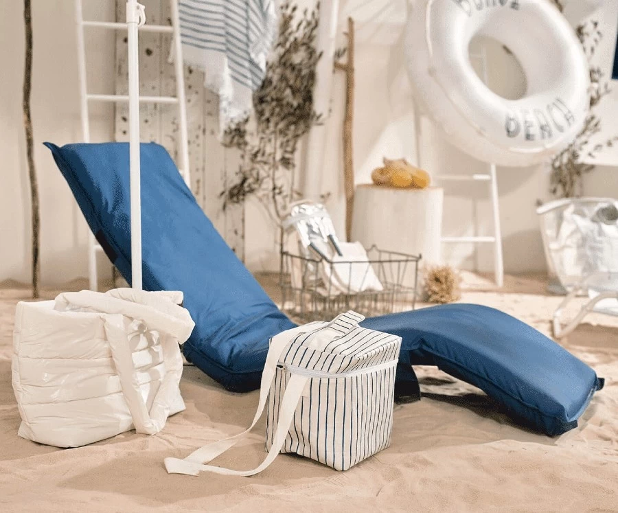 Chill in style both inside and out with The Lounger Beach Chair from Sunnylife, a versatile adjustable reclining sunbed made from durable and water-repelling 300D polyester fabric, making it perfect for pool or seaside use.