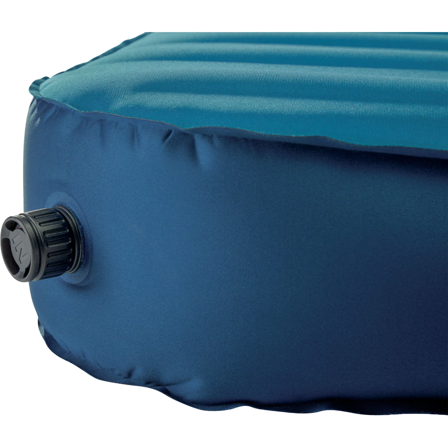A StrataCore construction uses a continuous layer of thermal foam between alternating ridges of air and foam. The design yields the best warmth-to-weight ratio of any self-inflating pad and is easy to compress for storage. The foam core self-inflates when unpacked and can be topped off with a few pumps of the included pump stuff sack to your desired firmness.