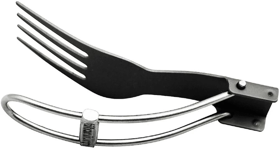 The folding handle is designed to absorb impact, and locks into position by pushing down the sliding block. For easier storage, the sliding block unlocks the folding handle, neatly folding the fork in half. This fork fits in any Toaks pot or cup.