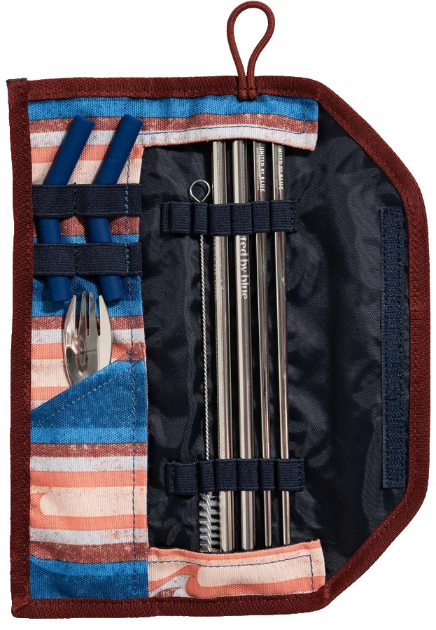 - Two stainless steel straws, one silicone straw tip, one straw cleaner, one stainless steel spork, one pair of stainless steel chopsticks