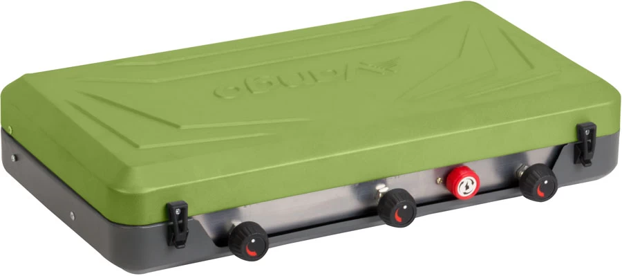 This fantastic camping stove system features a sleek stainless steel body with an easy-to-clean chrome steel burner grate, hard-wearing brass flame control valves, and a stainless steel drip tray to help avoid excessive mess from grease and oils.